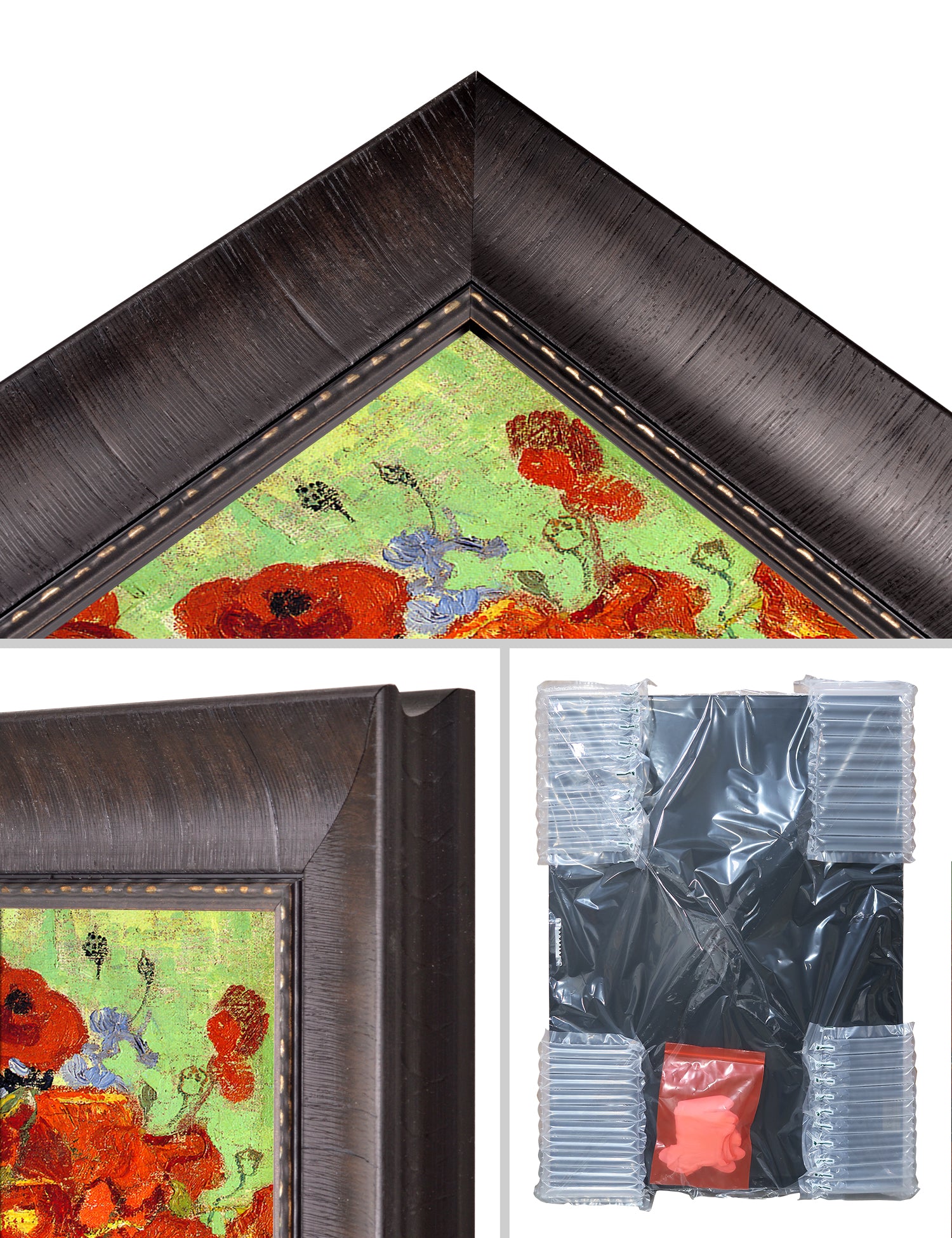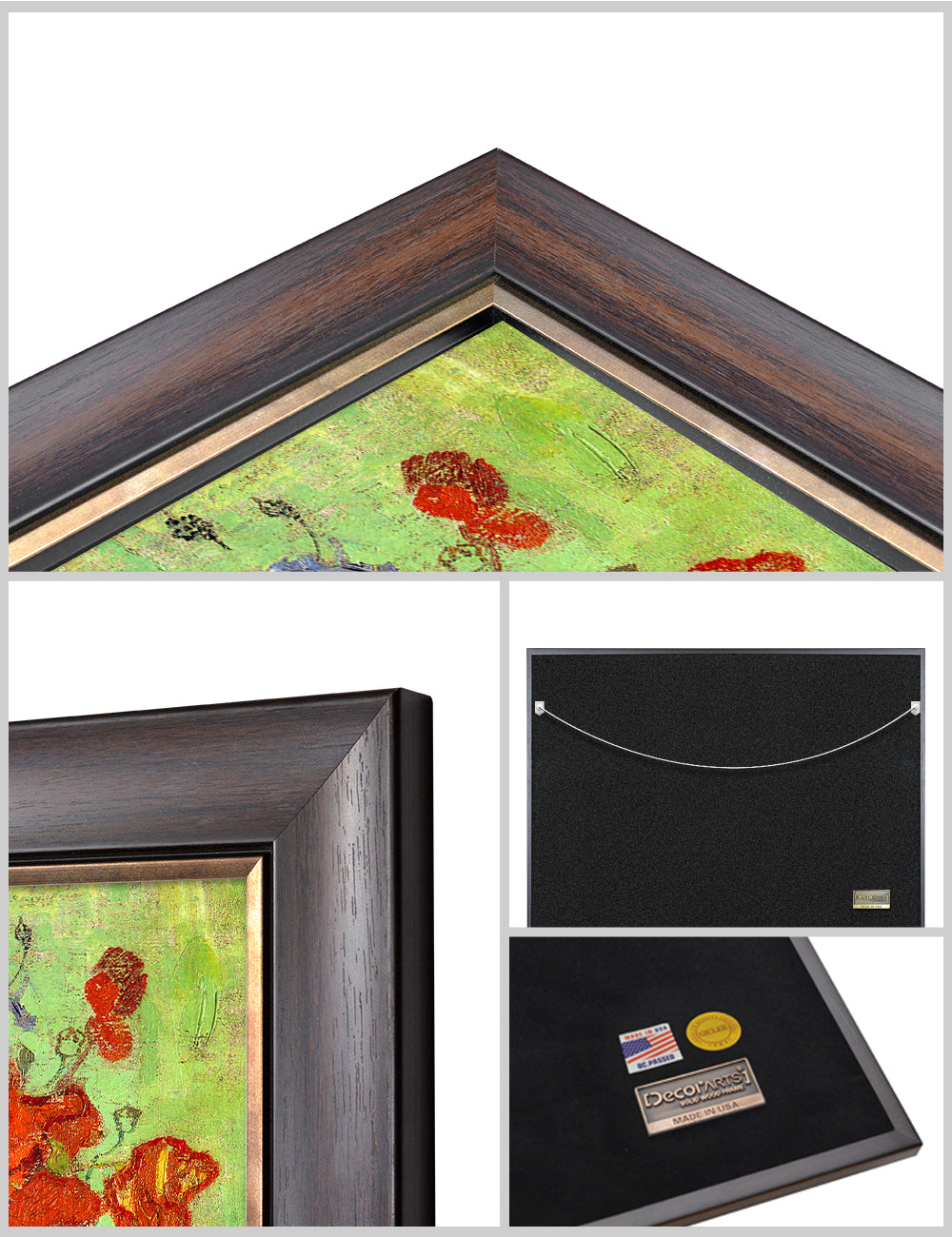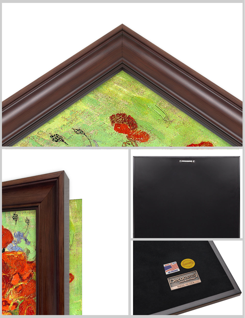 Our frames are specifically chosen to complement each artwork. However, we will gladly accommodate if you'd prefer a different frame. Contact us at customerservice@decorarts.com for inquiries.