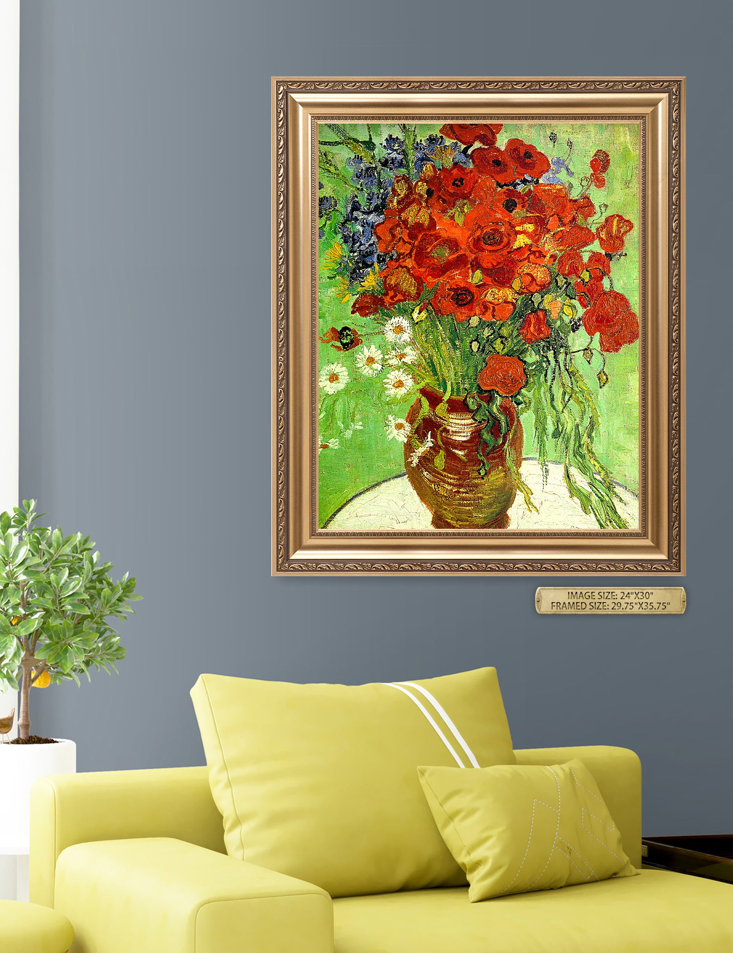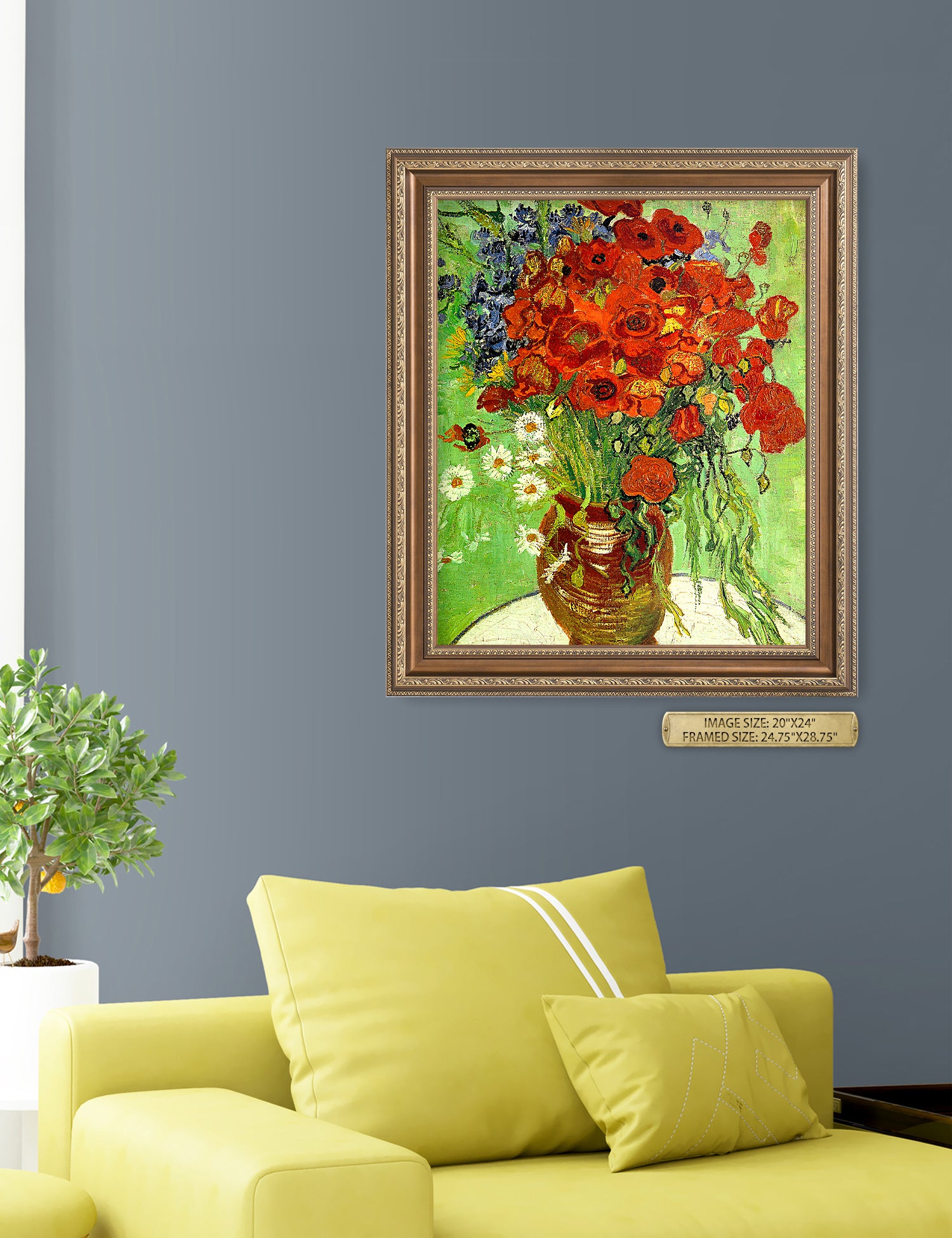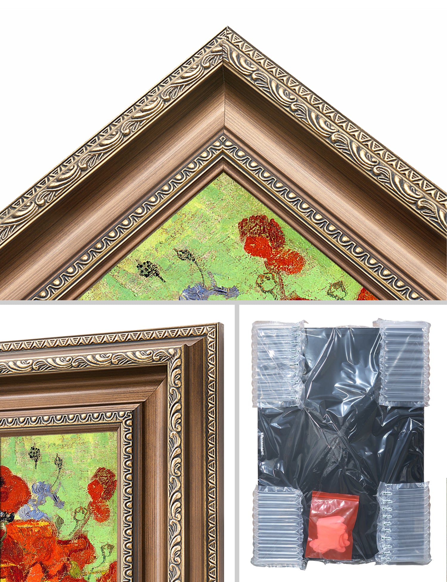 Our frames are specifically chosen to complement each artwork. However, we will gladly accommodate if you'd prefer a different frame. Contact us at customerservice@decorarts.com for inquiries.