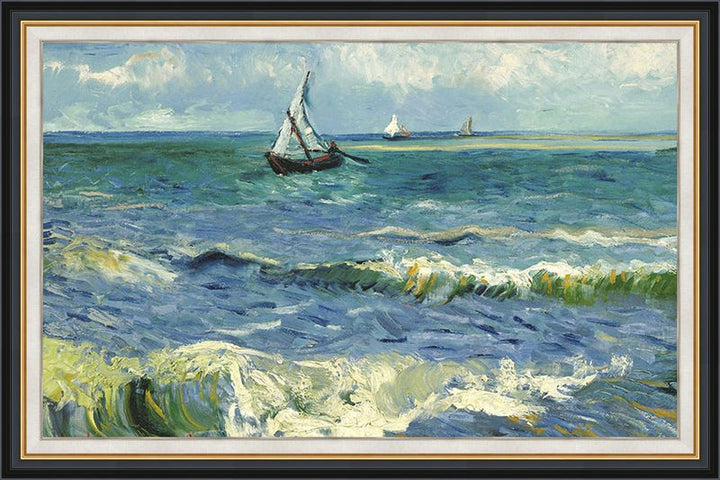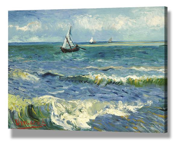 Van Gogh painted this vibrant seascape outdoors. In fast, loose brushstrokes he tried to capture the colour of the sea. He described it as 'a colour like mackerel, in other words, changing ¡ª you don't always know if it's green or purple ¡ª you don't always know if it's blue ¡ª because a second later, its changing reflection has taken on a pink or grey hue.' (See letter to Theo van Gogh, 3/4 June 1888) In the paint layer of this work are grains of sand that got in there during painting in the open-air.